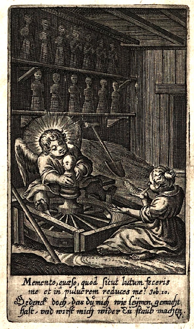 Das Wort, das durch den HERRN zu Jeremia geschah: Mache dich auf und geh in das Haus des Töpfers hinab, und dort werde ich dich mein Wort hören lassen! Und ich ging in das Haus des Töpfers hinab, und siehe, er war ⟨gerade⟩ mit einer Arbeit auf der Scheibe beschäftigt. Und das Gefäß, das er aus dem Ton machte, missriet in der Hand des Töpfers. Und er machte wieder ein anderes Gefäß daraus, wie es in den Augen des Töpfers recht war zu tun."