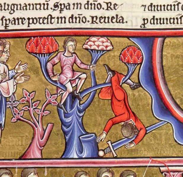 Im Canterbury Psalter (vor 1200) gehört dieses Bild (Ausschnitt) zum zitierten Psalmvers: