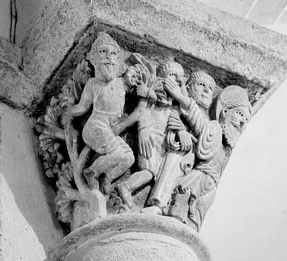 Vgl. das Kapitell im Chorumgang der Kirche von Saint-Nectaire (Puy-de-Dôme), wo die Szene mit Zachäus eindeutig gemeint ist, vgl. rechts den mit Kreuznimbus versehenen Jesus (Quelle Wikimedia):