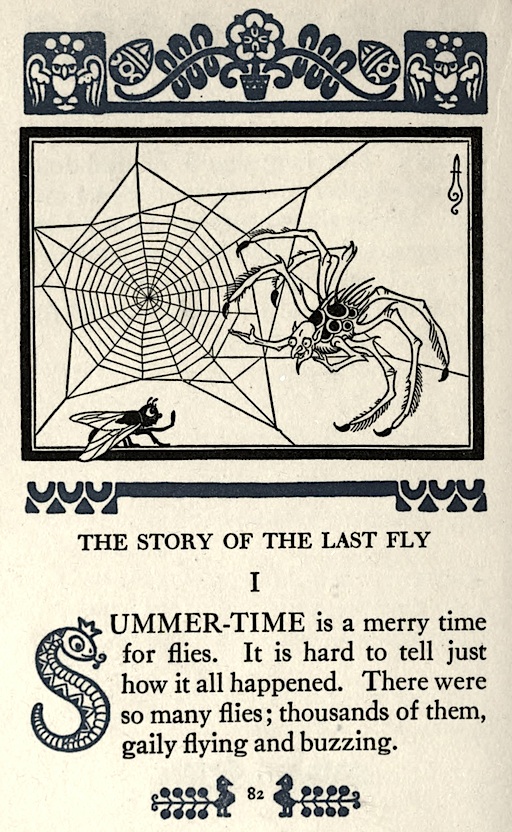 Jonathan Swift (1667–1745) inszeniert eine Kontroverse zwischen Spinnen und Bienen. In einer Ecke der Bibliothek wird eine fette Spinne von einer Biene attackiert, die ihr Netz zerstört; es kommt zu einem Streitgespräch, in der die Spinne der Biene vorwirft, sie plündere überall in Feld und Garten, Nesseln wie Veilchen, während sie selbst ein angeborenes Vermögen (nämlich ein Netz zu konstruieren) in sich selbst trage: