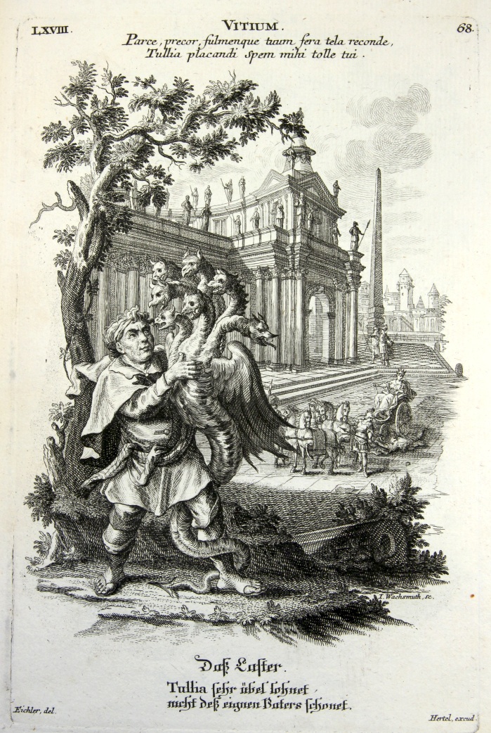 Gottfried Eichler d. J. (1715–1770, inv.) und Jeremias Wachsmuth (1711–1771, sc.) haben das Bild des Lasters angereichert: