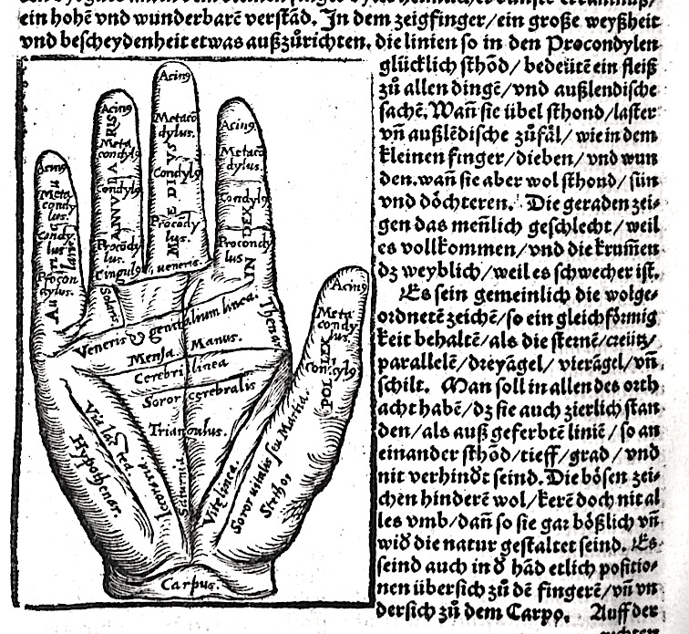 Hände, Hände, HändeEinleitungDie Hand des Menschen unterscheidet sich – weil sie ➜ unspezifisch ist – wesentlich von den Vorderextremitäten (Hufe, Grabschaufeln, Flügel usw.) der Tiere, was bereits Aristoteles feststellte. Insofern ist sie auch ein Symbol für die ›Weltoffenheit‹ (A.Gehlen und andere) des Menschen. Veristische Darstellungen der Hand, sei es mit zeichnerischen Mitteln, sei es aufgrund technischer Apparaturen (röntgen) dienen dem ➜ Arzt, um das Organ genau zu kennen; der ➜ Künstler braucht die Vorlage, um eine Hand zeichnen zu können. Hände sind individuell geformt; die Seelen / Charaktere auch. Sollte da nicht ein Zusammenhang bestehen? In der ➜ Chiromantie ist die Hand gleichsam ein Dokument, auf dem der dafür Ausgebildete Charakterzüge und die Zukunft ablesen kann. Die Handgesten des ➜ Redens und des ➜ Segnens zeigen den Vollzug eines verbalen Vorgangs, der mitunter von einer Gebärde begleitet werden muss, um seine Wirkung zu entfalten. Bei der Begegnung mit dem Numinosen werden die Hände teils ➜ geöffnet, teils ➜ gefaltet. In ➜ Gebrauchsanleitungen wird mit einer (zeichnerisch freigestellten) Hand dargelegt, wie man ein Instrument handhaben soll. Um Sachverhalte in Erinnerung zu behalten, kann man die einzelnen einzuprägenden Elemente einer räumlichen Struktur zuordnen. Die Anatomie der Hand (Fünfstrahligkeit; jeder Finger hat drei Glieder) und die Tatsache, dass wir sie immer ›bei der Hand haben‹, machen sie als Mittel der ➜ Mnemotechnik (Erinnerungskunst) geeignet. Auch kann man sie einsetzen, um ➜ Zahlen oder ➜ Buchstaben zu visualisieren. Sogar als ➜ Sonnenuhr kann die Handfläche dienen. Die Hand ist anatomisch so eingerichtet, dass nur bestimmte Stellungen der Finger möglich sind (Daumen, Zeigfinger, Mittelfinger weisen zwingend räumlich in drei Dimensionen). Diese Eigenschaft kann visuell ausgenutzt werden für ➜ technische Anleitungen. Die Hand kann dennoch verschiedene Formen einnehmen (zur ➜ Faust geballt, ausgestreckt usw.). Diese Gestaltvielheit kann verwendet werden für ➜ geistliche Deutungen wie für ➜ Spiele. Das Christentum hat eine gewisse Abneigung, Gott anthropomorph darzustellen; um zu visualisieren, dass Er die Menschen ➜ erhält, genügt es, eine Hand zu zeichnen; diese steht metonymisch für Gott, insbesondere wenn er ➜ die Welt erschafft. Mechanische Arbeit, Schreiben, Zeichnen beruht auf handwerlicher Geschicklichkeit; der ➜ Meister zeigt stolz das Basis-Werkzeug.