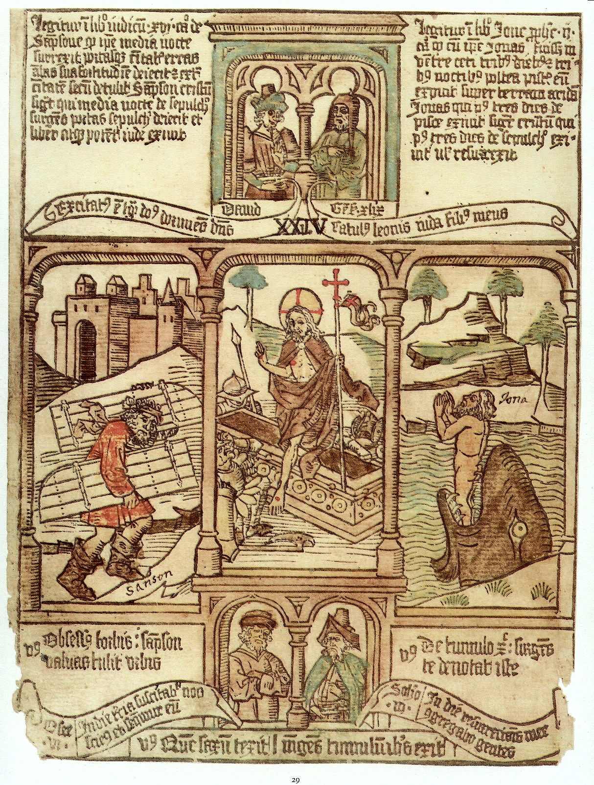 Hans Engelhardt, Der theologische Gehalt der Biblia Pauperum, Straßburg: Heitz 1927 (Studien zur deutschen Kunstgeschichte Heft 243) — [Bereits eine fundierte Darstellung; mit Synopsen der aufeinander bezogenen Bibelstellen]